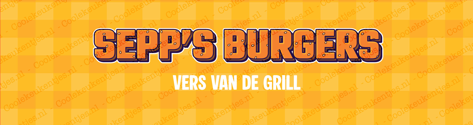 - De bovenste sticker kan gepersonaliseerd worden met een naam of eigen tekst, bijvoorbeeld Sepp’s Burgers.