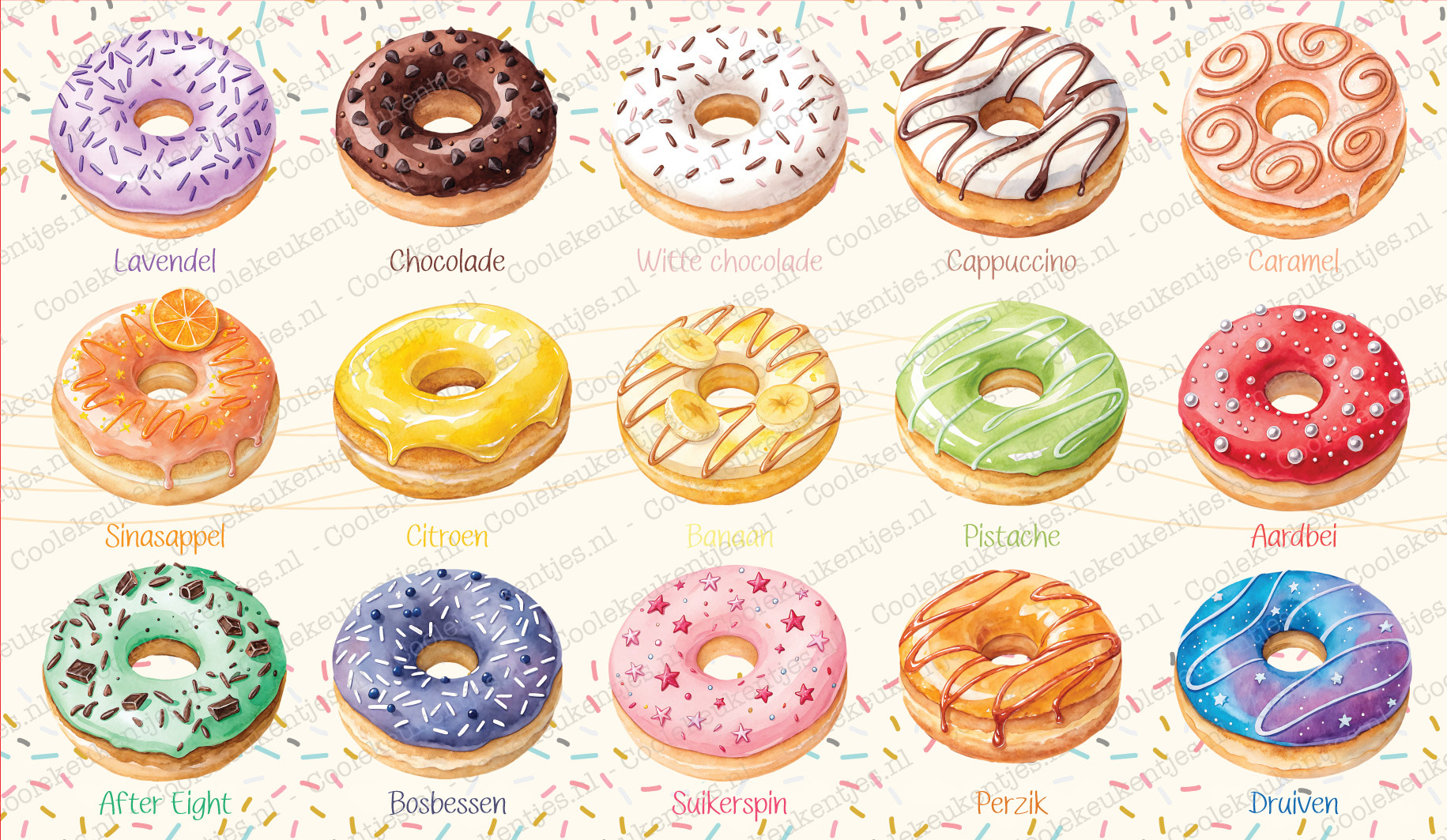 - Vrolijk en speels ontwerp met kleurrijke donuts en decoraties