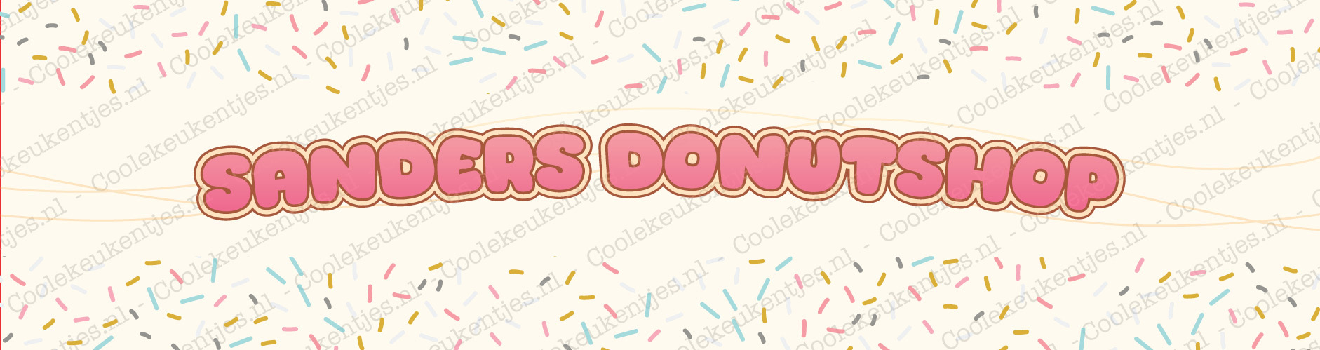 - De bovenste sticker kan gepersonaliseerd worden met een naam of eigen tekst, bijvoorbeeld Sanders Donutshop.