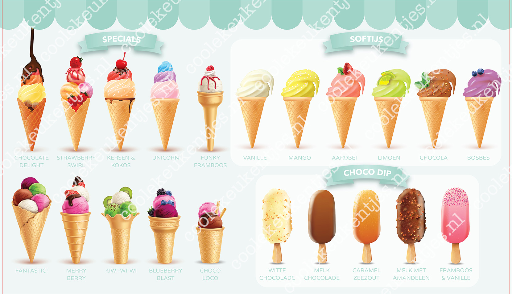 - Vrolijk en speels ontwerp met kleurrijke ijsjes en accessoires