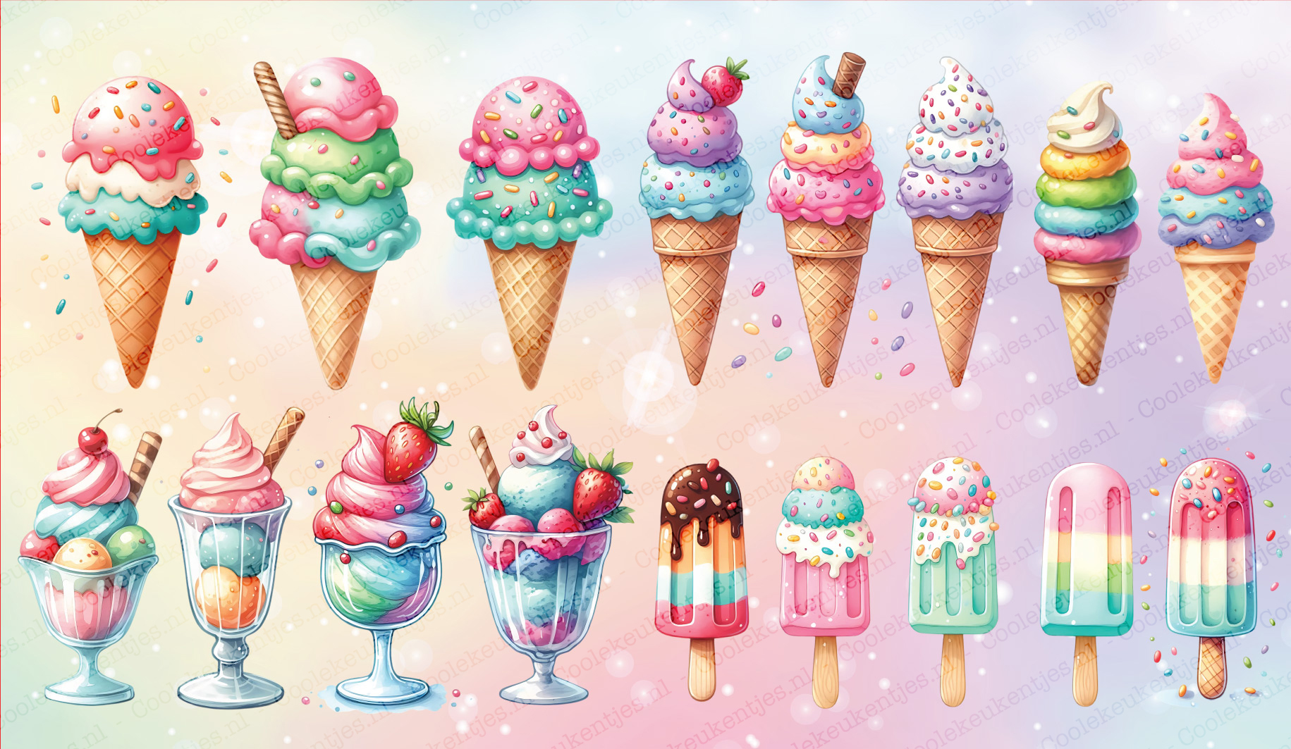 - Vrolijk en speels ontwerp met kleurrijke ijsjes en decoraties