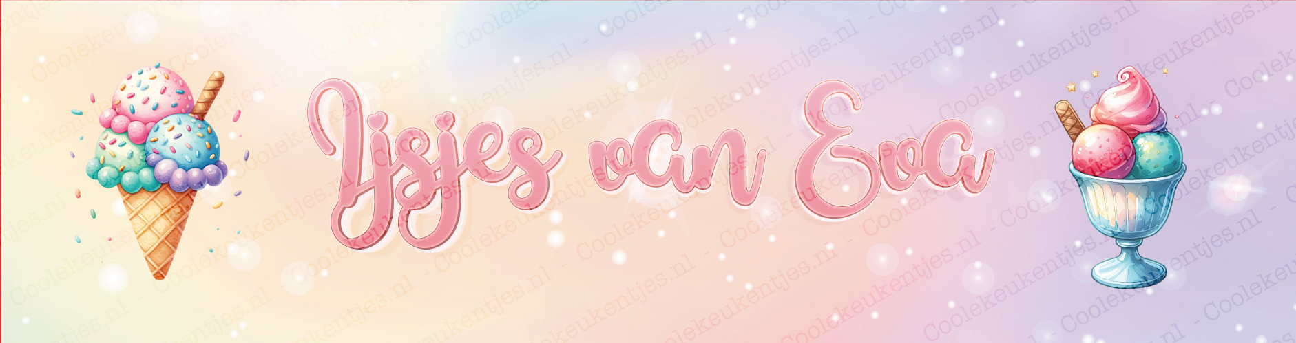 - De bovenste sticker kan gepersonaliseerd worden met een naam of eigen tekst, bijvoorbeeld IJsjes van Eva.
