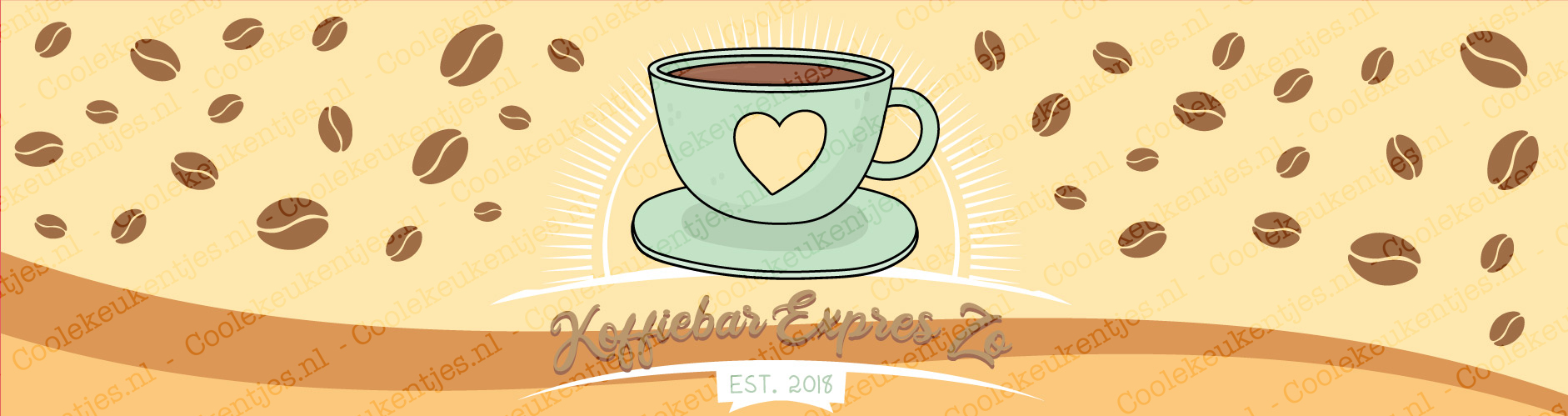 - De bovenste sticker kan gepersonaliseerd worden met een naam of eigen tekst, bijvoorbeeld Koffiebar ExpresZo