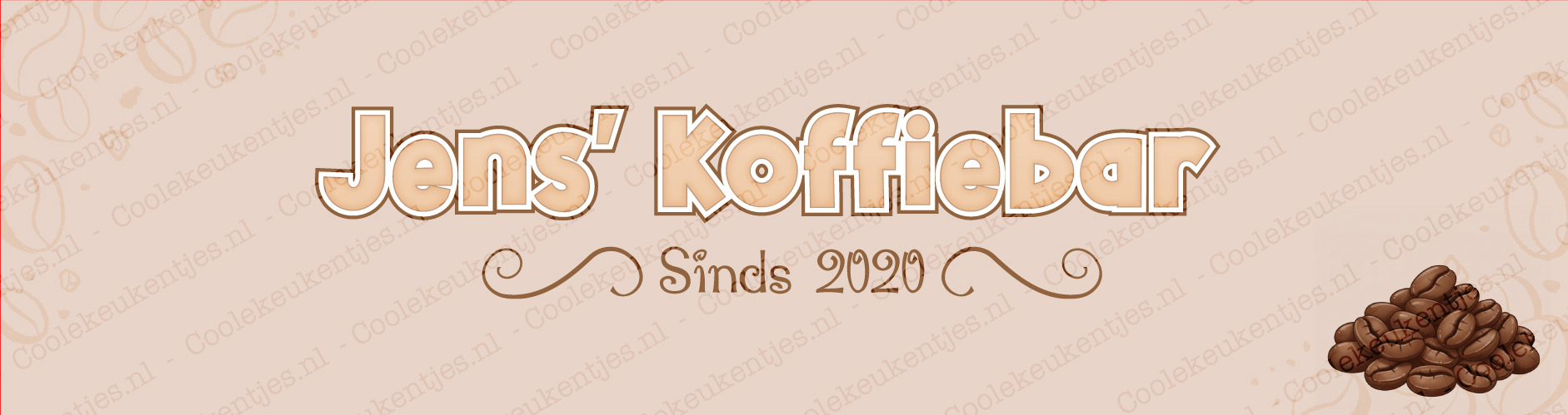 - De bovenste sticker kan gepersonaliseerd worden met een naam of eigen tekst, bijvoorbeeld Jens’ koffiebar.
